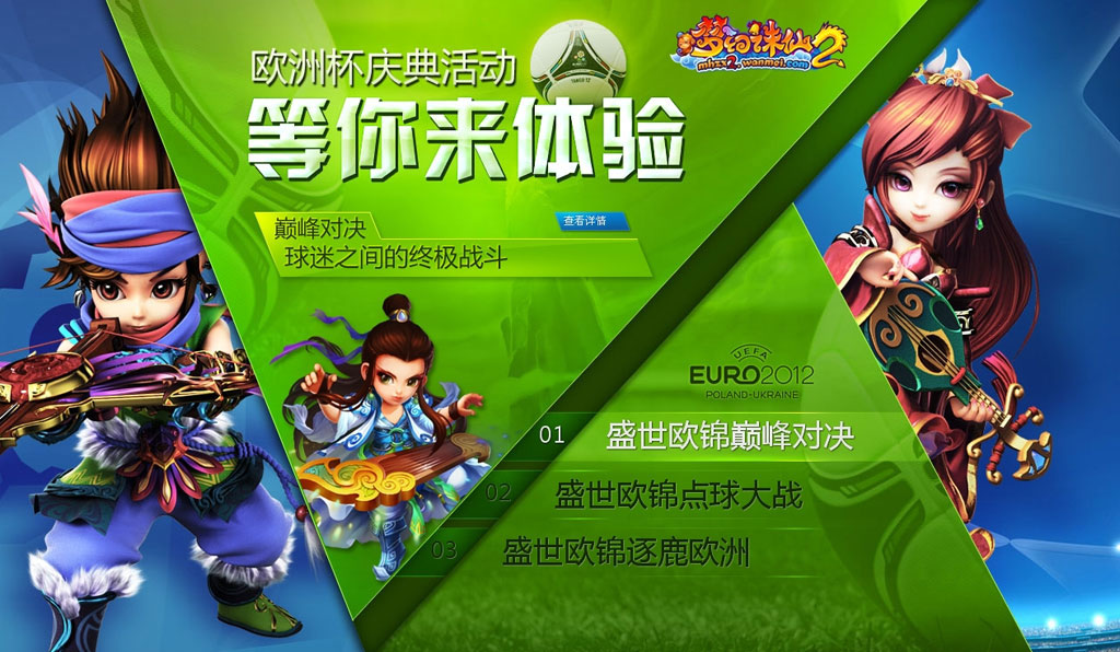 6月9日万众瞩目的欧洲杯即将拉开帷幕,广大球迷爱好者在观看球赛之余,可别忘了《梦幻诛仙2》中也有精彩的欧洲杯庆典活动哟!《梦幻诛仙2》为让广大球迷朋友率先体验欧洲杯带来的劲爽感受,特在仙侠世界中筹备了众多丰富活动供大家参与!